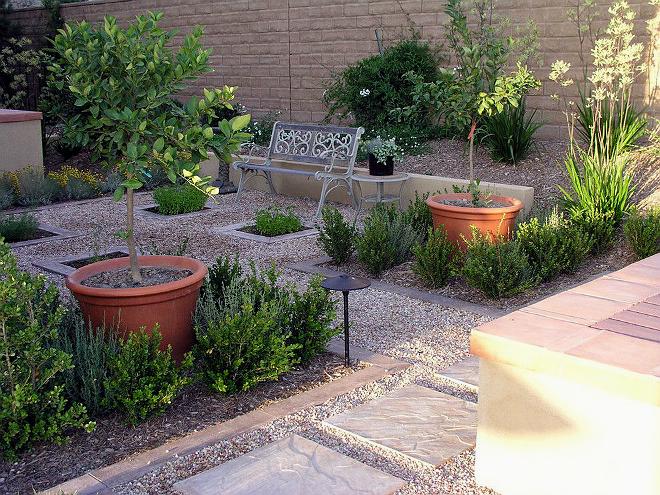 Для оформлення простору навколо водойм або на відкритих сонячних ділянках можна встановити ковані лавки з кам'яними або металевими сидіннями і прикрасити їх пледами, покривалами, виконаними в стилі макраме або печворк, декоративними подушками.