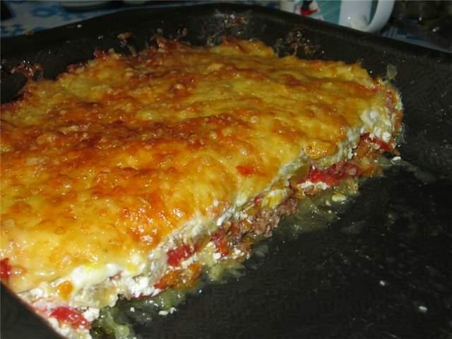 Незвичайна сирна запіканка з м'ясною начинкою та яйцями