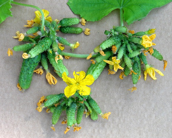 У звичайних сортів або гібридів огірків в пазухах листків, як правило, утворюється по 1-2 суцвіття.