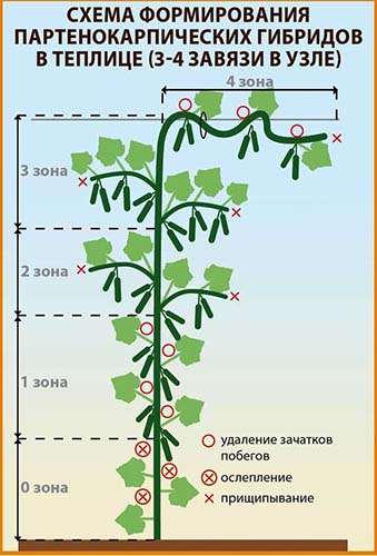 Огіркам з пучковим закладенням зав'язей в обов'язковому порядку потрібно формування, яку можна провести за такою схемою: