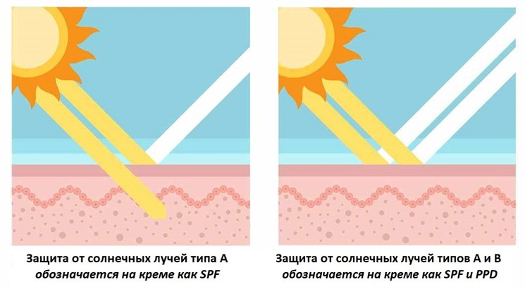 Щоб забезпечити захист від другого, небезпечного, типу сонячних променів, слід шукати на флаконі з сонцезахисним кремом букви: PPD – постійна пігментаційних захист від раку і пігментних плям. Але такий крем купити складно. Оптимальний захист під час прийому сонячної ванни може забезпечити тільки кремо з обома позначками: SPF і PPD.