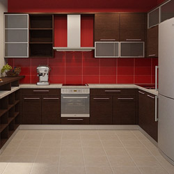 - З червоним. Затребуваність цієї комбінації навіяна сучасними стилями. Кухня буде виглядати технологічною і модною. Рамка відмінно підкреслить будь-який відтінок червоного, але використовувати останній слід обережно, щоб не переборщити. Краще додати в інтер'єр сірі відтінки.