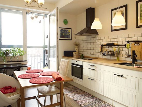 Увага! Для маленької кухні дуже складно застосувати даний варіант, так як відсутність верхнього ярусу змушує розташовувати більше нижніх шафок, які ставити, найчастіше, нікуди.