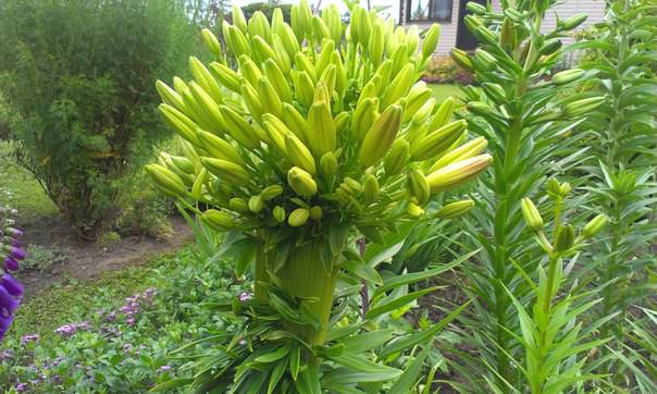 - на стадії появи листя і фарбування бутонів лілії потребують підгодівлі розчином коров'яку, розведеного водою в пропорції 1: 10;