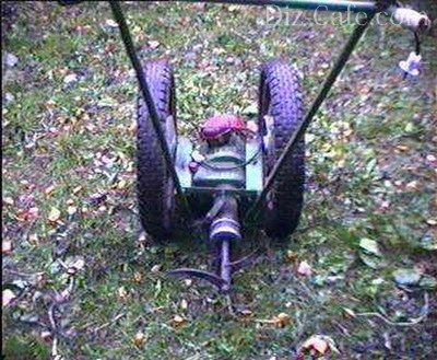 Конструкція повинна бути жорсткою, тому вузли стягуються болтами. Колесо середнього розміру має бути закріплено на рамі контргайками. Вийшов саморобний культиватор, який дуже функціональний і зручний в експлуатації.