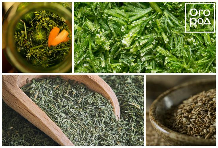Зазвичай спочатку збирають нижнє листя, які швидше підсихають. У міру зростання рослини, вищипують бічні пагони. А в кінці сезону зривають стебла і парасольки, використовуючи їх для консервування.