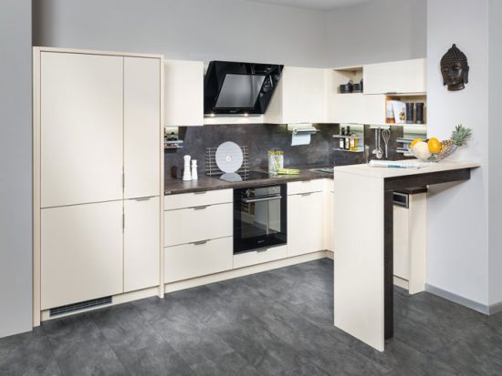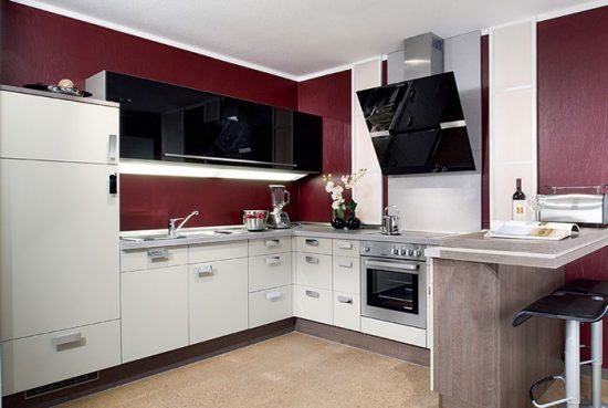 Кутова кухня, крім багатофункціональності та явного зручності, залишає широке поле для експериментів, адже атмосфера проявляється в дрібницях. При такому плануванні не складе труднощів розміщення барной стійки і тих деталей, які відповідають Вашим уявленням про ідеальну кухні, забезпечуючи відмінний настрій щодня.