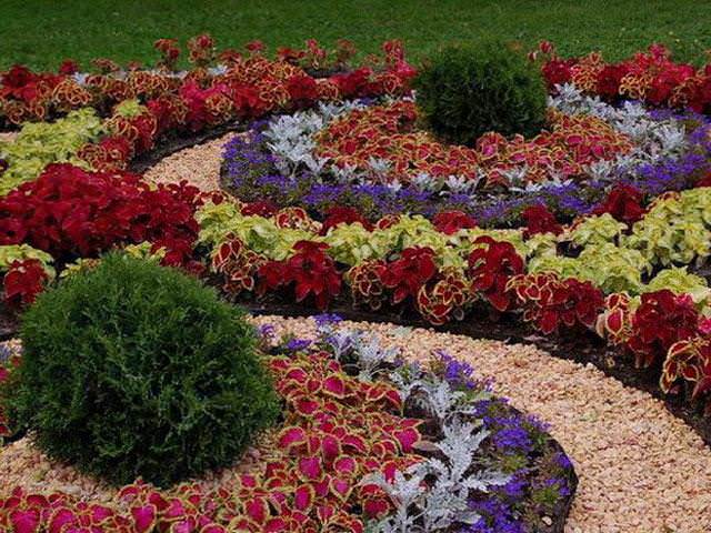 - базовим прикрасою цветнікавиступают низькорослі хвойники і декоративно-листяні культури.