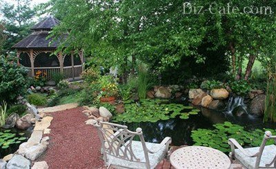 Відмінний відволікаючий маневр – це відображення. Воно має зачаровує ефект. А що в маленькому саду може бути використано в якості поверхні, що відбиває? Водна гладь невеликого акуратного ставка! Такий водойму не займе багато місця. Це може бути навіть струмок, що протікає вздовж боку майданчика. Ще один варіант – хоч греблю в двох рівнях з перекинутим через нього містком. Власне відображення у воді завжди привертає увагу.