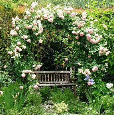 Поставте біля паркану звичайну лавку і спорудити прямо над нею високу квітучу арку, повиту трояндами. Якщо тепер присісти на цю лаву, виникне повне відчуття того, що навколо вас тягнеться просторий сад, в глибині якого ви і перебуваєте. Прийоми створення дикого і злегка запущеного саду завжди ефективні саме на ділянках, простір яких обмежена.