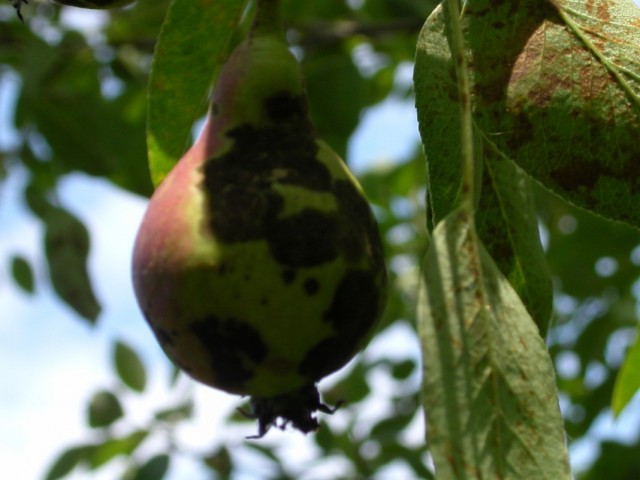 Парша на листках і плоді груші.