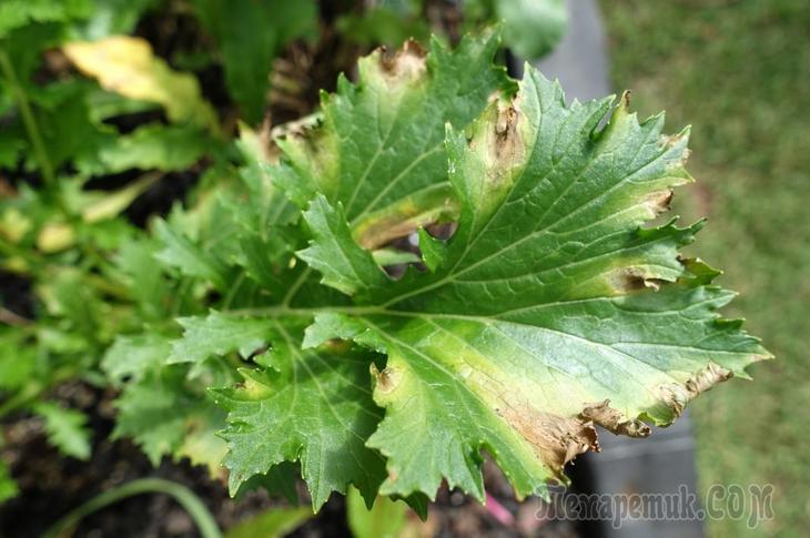 Церкоспороз, або бура плямистість на листках салату Мізунь.