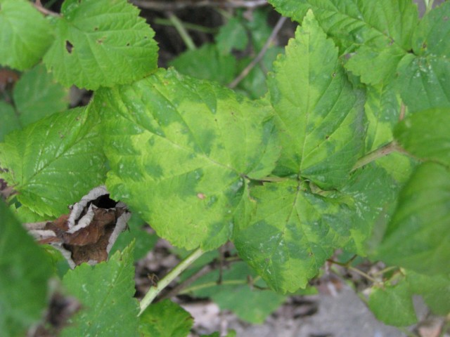 Вірусне захворювання на листках малини.