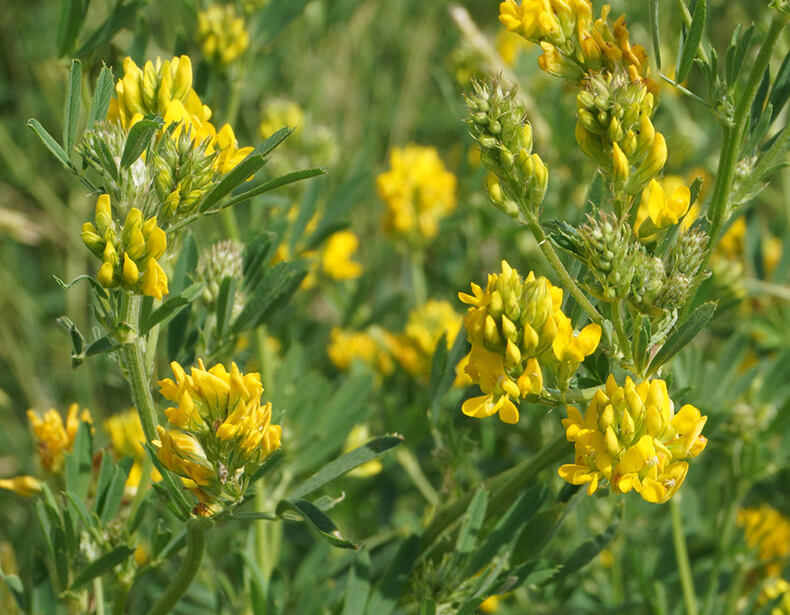 Люцерна – це багаторічна (рідше однорічна) рослина, яке виростає до невеликих розмірів трави або напівчагарника. Відноситься до сімейства Бобові. Має багато народних назв, які нерідко відображають її цілющі і медоносні властивості: врачебніца, медунка, хропун, іонжа, буркунчік і інші.