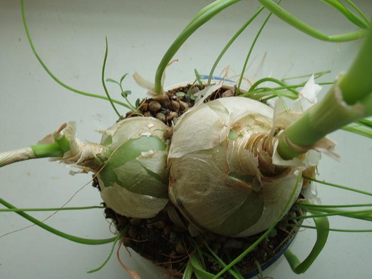Цибулини цієї рослини довгасті