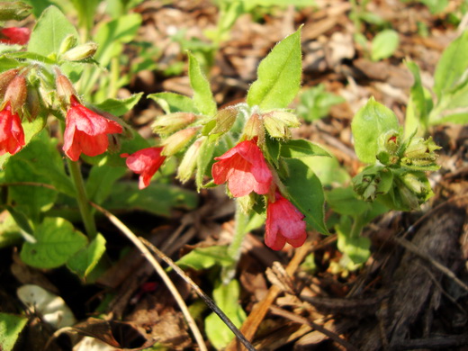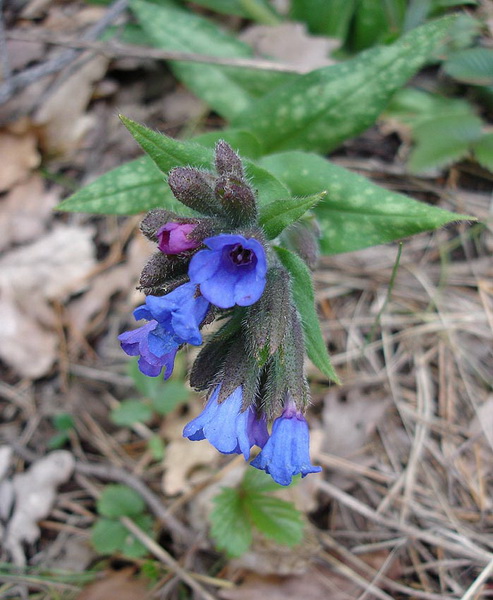 Зацвітає медунка лікарська на початку травня, припадаючи рожевими суцвіттями. У міру відцвітання віночки квіток стають ліловими.