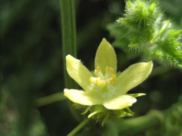 Округлі 10-25-сантиметрові листя опушені волосками-щетинками. Квітки бувають жіночими і чоловічими. Вони кремові або зеленуваті.