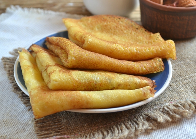 Невеликий рада – при замішуванні тіста для млинців найкраще використовувати цукрову пудру, в цьому випадку тісто виходить ніжнішим і повітряним. Кількість цукру залежить від того, з чим будуть подаватися млинці: якщо зі сметаною, то вони можуть бути більш солодкими; а якщо з медом або варенням, то зайва солодкість ні до чого.