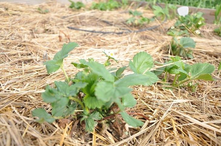 - Солома – популярний мульчують матеріал, вона здатна утримувати тепло в грунті і використовуються для вирощування полуниці, огірків і картоплі. Правда, при її перегнивання знижується рівень азоту в ґрунті, а це може зажадати додаткової підгодівлі нітратами.