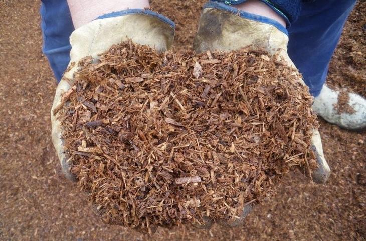 Приклади органічної мульчі: тирса, кора, хвоя, тріска, шишки