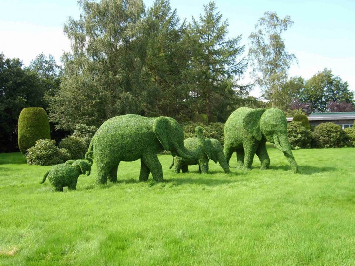 Стадо зелених слонів причаїлося на тлі яскравого газону і чагарників. У тіні розташувалися вгодовані пляжники, щедро вкриті зеленим листям … Це не сон і не марення. Це – приклади топиарного мистецтва, фігурної стрижки дерев і чагарників, одного з найцікавіших напрямків ландшафтної архітектури.