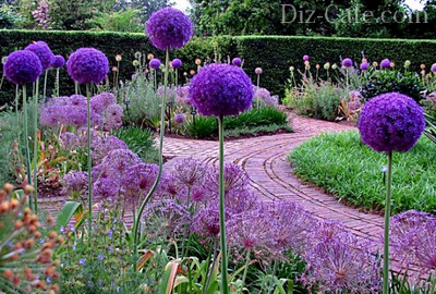 Алліум або декоративний лук заслуговує на окрему увагу. Викидаючи по весні квітконосні стрілки висотою 80-170 см (залежно від сорту), він вбирається в кулясті суцвіття приголомшливої краси.