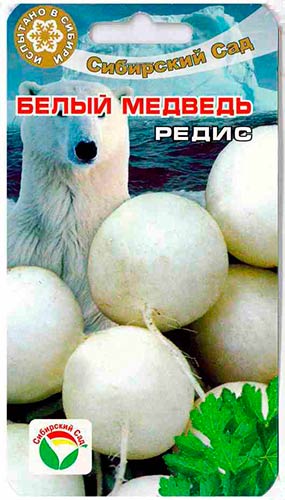 Плоди соковиті круглої форми з білої, щільною м'якоттю всередині. Редис Білий ведмідь характеризується півострів пряним смаком. Переважно використовується для вирощування в північних регіонах з прохолодним кліматом і суворими зимами.
