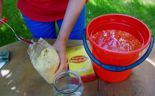 - Половину відра заповніть свіжим листям тополі, Залийте їх водою, прокип'ятіть протягом 15 хвилин, доведіть обсяг до 10 л і настоюйте 3 дня.