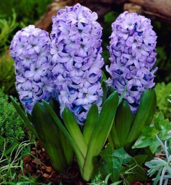 - У перший рік паростки гіацинта потребують ретельного догляду, оскільки це головний період формування цибулини. Від умов першого сезони залежить швидкість дозрівання і життєздатність рослини. Полив повинен бути регулярним, але не надмірним. За сезон необхідно 2-3 рази провести підгодівлю мінеральними добривами. Найкраще зробити суміш з аміачної селітри (20 г), суперфосфату (30 г) і сірчанокислого калію (10 р) Суміш розчиняється в 10 л води. Така кількість підгодівлі розраховане на 1,5 м грядки.