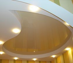 - багаторівнева – виготовляється як з поєднання різних видів натяжних полотен, так і з застосуванням профілів з гіпсокартону.