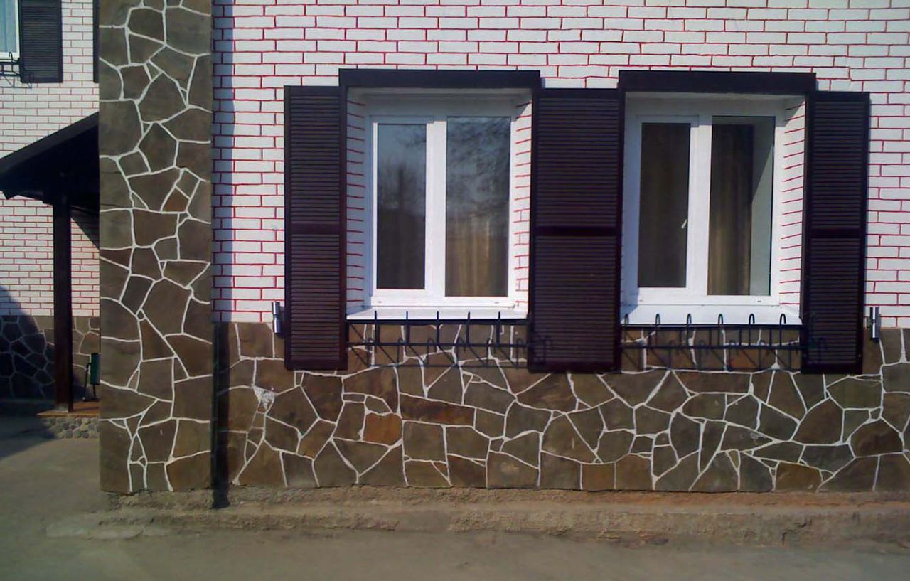 - Завершальний етап – це облицювання віконних прорізів і карнизів. Їх потрібно обкладати по нитці, для укосів бажано вибрати камені певних розмірів. Працювати потрібно особливо обережно, щоб каміння лежало рівно, без дефектів. Так як ці місця першими потрапляють під огляд і можуть зіпсувати зовнішність будівлі.