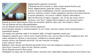 - Борис, Ростов: «Вирощуванням огірків займаюся професійно – в тому числі і взимку в теплицях. Як підгодівлі застосовую і мінерали, і органіку, і звичайно, борну кислоту. Ця речовина допомагає зміцнити рослини, формує рясні зав'язі, покращує смак плодів. Всім рекомендую це дешеве і ефективне добриво. До того ж розчин ще й дуже просто готувати ».