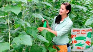 Один з відомих народних способів є обприскування огірків борною кислотою.