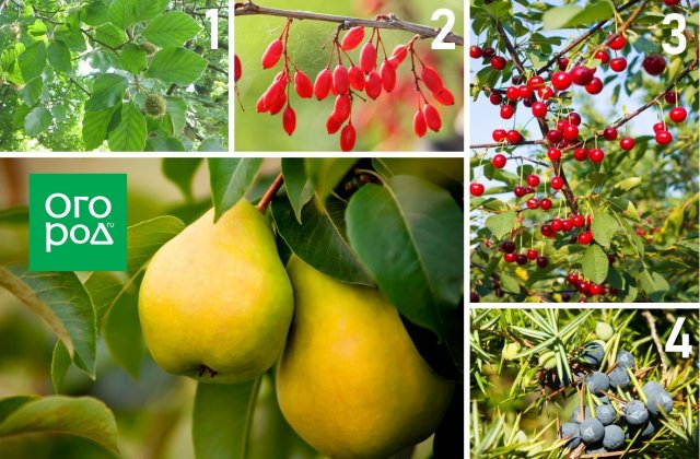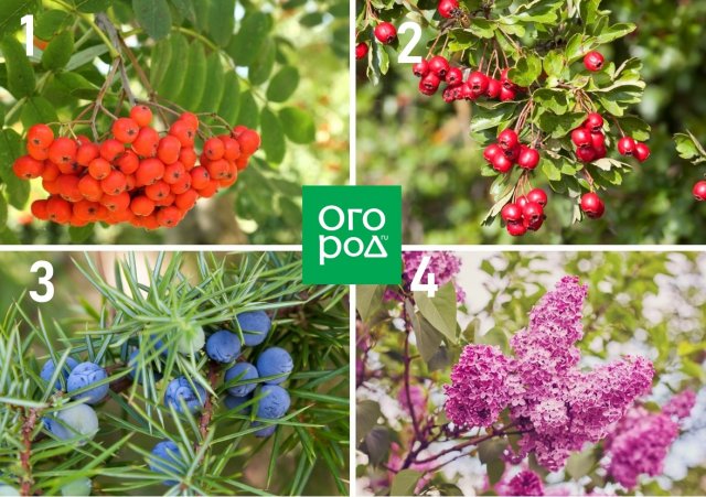 1 – горобина; 2 – глід; 3 – ялівець; 4 – бузок