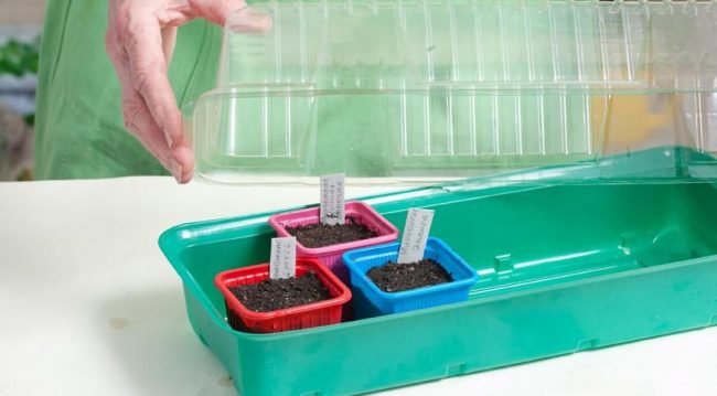 Накрийте кришкою горщики з насінням Мірабіліс для швидкого вирощування
