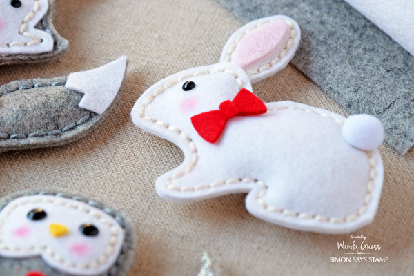 Деякі деталі, наприклад, вушка і лапки, доведеться прошивати між двома викрійками новорічних іграшок з фетру. А часом їх буде потрібно приклеїти через те, що вони занадто малі, прошивати їх не зручно.
