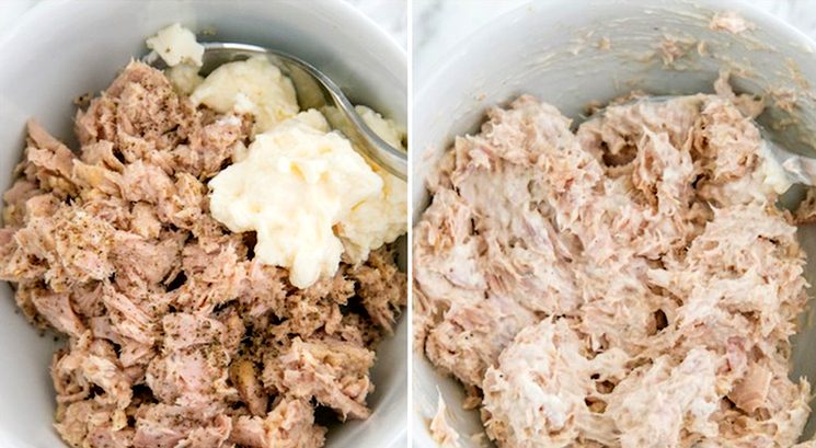 - Звільнену від масла або натурального соку консервовану рибу розім'яти виделкою в окремій ємності.