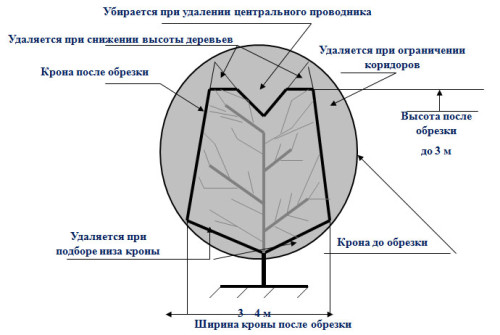 Такий метод обрізки карликових плодових дерев вважається популярним в Росії. У дерева формується центральний провідник (висота не більше 2 м) з середньою довжиною гілок – 1 м. Крона такого обрізаного дерева повинна звужуватися догори, нагадуючи геометричну фігуру.
