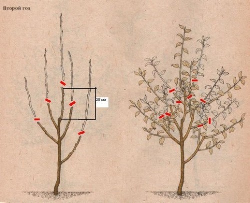 Після посадки однорічного саджанця, коли він перебуває в стадії спокою, його необхідно обрізати. Максимально допустима висота саджанця – 50 см. Зріз потрібно зробити на протилежній щеплення нирку.