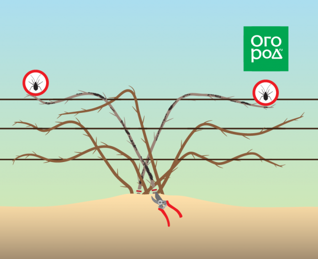 Заражені батоги, а разом з ними і всю стару лозу рекомендується спалити, щоб не допустити поширення шкідників на ділянці.