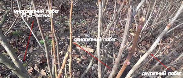 Таким чином, в результаті 4-річний кущ повинен мати порядку 9-18 гілок нульового порядку різного віку. Класична схема: 3-6 гілок однорічних, 3-6 гілок дворічних і 3-6 – трирічних і 3-6 – чотирирічних, які ви повинні вирізати.
