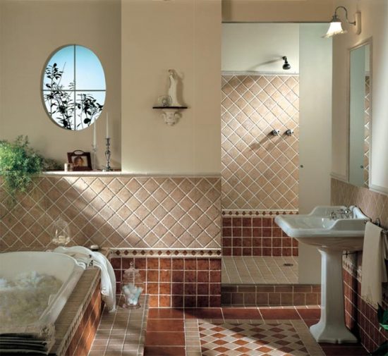 Непогано виглядає ванна, яка оформлена в геометричному стилі. Досить часто також використовуються при обробці приміщень і античні мотиви. Популярними останнім часом є і панно, складені з фотоплитки.