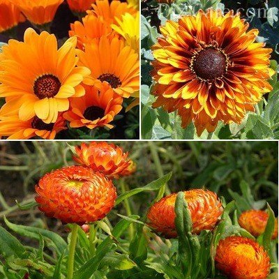 Соковитими фарбами жовтих відтінків наповнять квітник: Безсмертник пріцветніковий, діморфотека помаранчева і Гайллардія красива