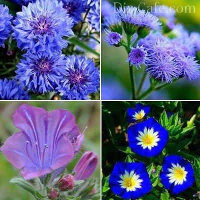 Для облаштування квітників у синьо-фіолетових тонах відмінно підійдуть: волошка синя, агератум мексиканський, синяк подорожникова, березка триколірний