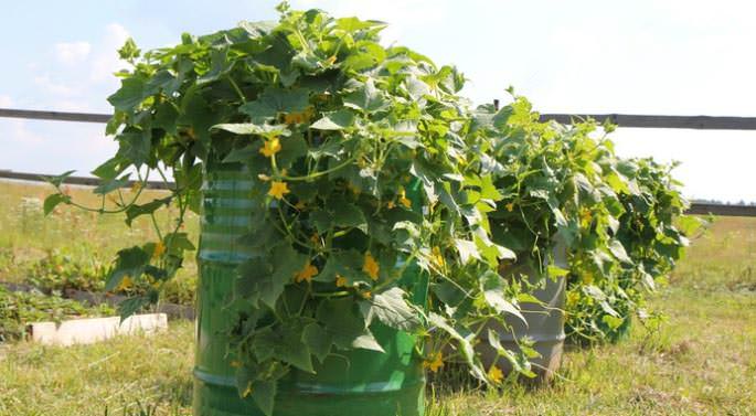 Крім цього, бочки з огірками – відмінна прикраса дачної ділянки. Їх можна розмістити ближче до зони відпочинку. Щоб вони виглядали більш гармонійно, багато дачників розфарбовують стінки бочок в різні кольори. З недоліків такого вирощування городники наголошують на необхідності періодично повертати бочки, щоб звисають батоги не перегріватися на сонці.