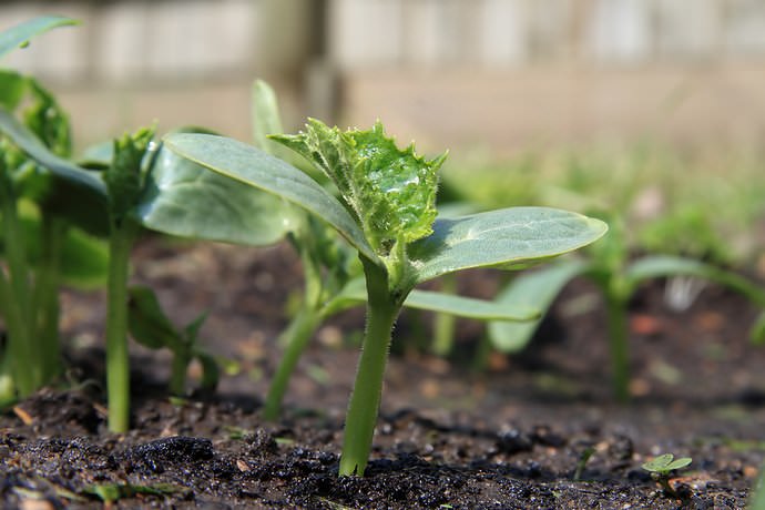 - до пересаджування на постійне місце розсаду слід підгодувати приблизно 2-3 рази, а перше внесення добрив проводиться після появи першого справжнього листочка;