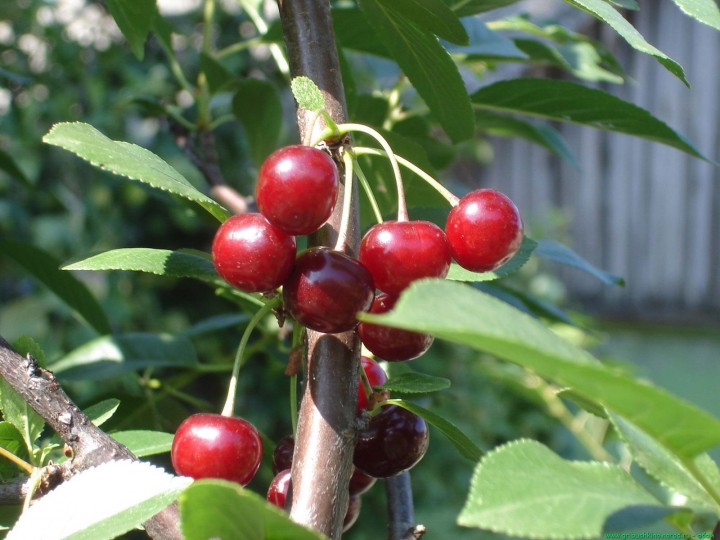 малятко. Висота цього сорту вишні – два метри або трохи більше. Урожай дозріває до кінця червня. Темно-червоного кольору ягоди відрізняється прекрасним видом і оцінюються за цим параметром на п'ятірку. До того ж вишні одномірні і благополучно транспортуються. Кісточка відділяється без праці.