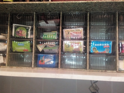 Як бачите, бокс для дрібниць у нас комбінований: крім висувних шухлядок-контейнерів в ньому є полки і кошики для зберігання дрібниці покрупней (хм, треба ж «дрібниця покрупней» або «велика дрібниця»? А по-іншому і не скажеш, нехай буде так). Нарешті у нас порядок, все розкладено по місцях! Подібні настінні полки для зберігання дрібниць дуже зручні, і таких конструкцій у нас з часом набралося аж чотири, де розсортовані за видами і розмірами: