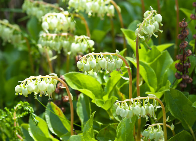 Трав'янистий багаторічник має тонкі стебла, посипані яйцевидним листям. Невеликі біленькі квіточки з зеленуватим відтінком зібрані в однобокі звисають суцвіття, що нагадують конвалію. Саме через таку форми кистей рослина називається однобоким.