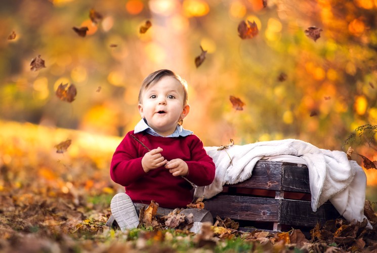 Окремий об'єкт для уваги це гумові чобітки – особливо якщо вони яскраві! Пошукайте калюжу і в кінці кінців дозвольте малюкові в неї увійти) – це ж для мистецтва! Ну і плюс до всього таке взуття не тільки прикрасить осінню фотографію, але і збереже ніжки в сухості. У цю пору року даний фактор важливий.